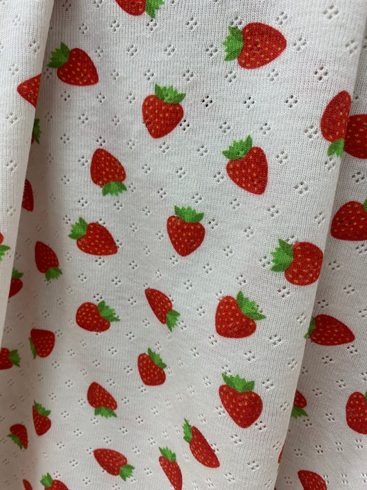 Ajour Stoff bedruckt Erdbeere