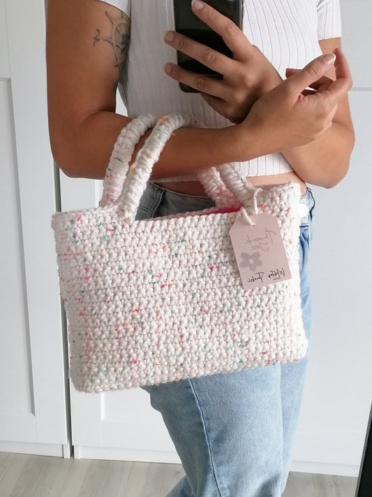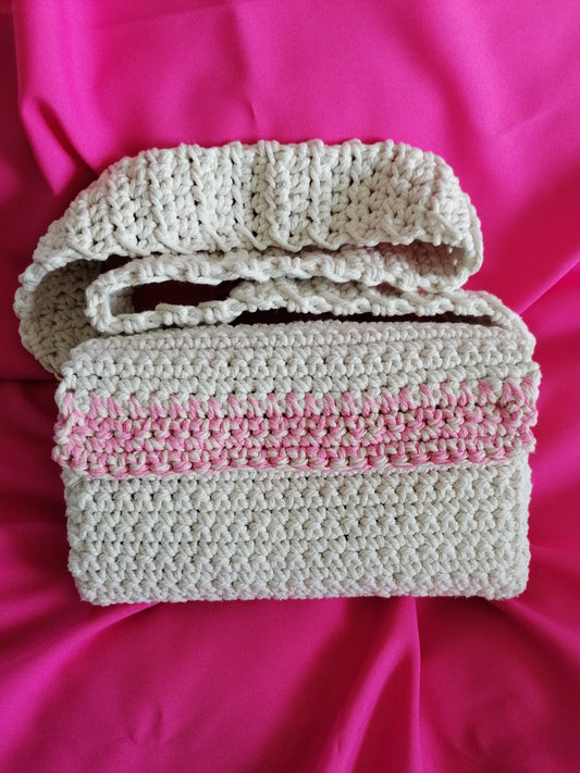 Handgefertigte Umhängetasche Offwhite pink